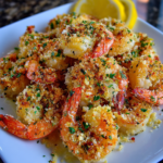 A rich and comforting baked shrimp dish inspired by classic scampi flavors, finished with a cheesy golden topping and perfect for sharing.