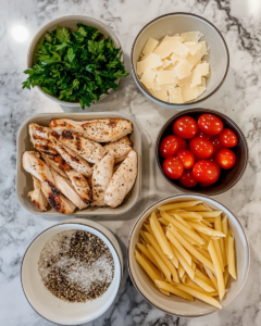 Chicken serves as the protein foundation of the salad. Boneless, skinless chicken breast remains a popular option because it provides lean texture and absorbs the garlic dressing easily. Diced or shredded chicken blends evenly throughout the pasta, allowing every portion to include savory pieces. Chicken thighs can also work well for cooks who prefer deeper flavor and slightly richer meat.