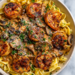 Decadent Blackened Shrimp Stroganoff represents the perfect marriage of bold flavor and comforting tradition. It’s a dish that captures attention from the first glance to the final bite. The smoky, spice-crusted shrimp bring personality and depth, while the creamy mushroom stroganoff sauce wraps everything in luxurious warmth. Together, they create a balance that feels refined yet approachable.