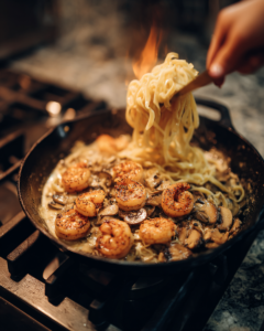 This recipe was inspired by the bold flavors of Southern-style blackened seafood paired with the timeless European roots of traditional stroganoff. The idea of merging smoky, spice-crusted shrimp with a velvety mushroom cream sauce creates a harmony that feels both modern and nostalgic. It’s a beautiful example of how two culinary traditions can meet in one unforgettable dish. Once you experience the richness of the sauce and the depth of the blackened seasoning together, this recipe will quickly become a favorite in your kitchen.